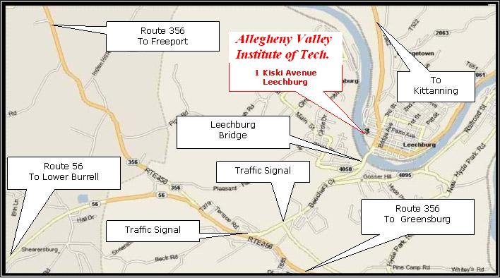 down the Leechburg hill, cross the bridge at the bottom of the hill.
